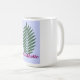 Palm Leaf Aesthetic Mug. A trendy 15 oz Classic Mug with a tropical palm leaf graphic and "Aesthetic" text on a lavender background. Customize it! Easily change the text, color, or background for a unique gift. Perfect for coffee, tea, or hot chocolate.