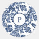 Classic Navy Blue Damask Pattern Round Sticker