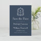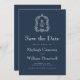 Classic Navy Blue Monogram Crest Script Save The Date