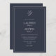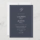 Classic Navy Blue Script Monogram Wedding Invitation