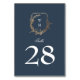 classic navy blue white wedding gold crest table number