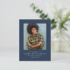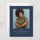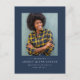 With its single vertical photo and simple, classic typography, this graduation announcement and invitation postcard is the perfect way to share your graduate news to friends and family and invite them to a graduation celebration. Suitable for guys and girls, it also works for both college and high school graduations. The classic navy blue background color is editable by clicking "customize further" and this design is available in other formats as part of the Lea Delaveris Design Simple Classic graduation collection.