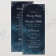 This elegant wedding program cards features traditional flourish corner and classic script on moody navy blue watercolor background, great for classic wedding, vintage wedding.