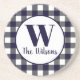 Classic Navy White Buffalo Plaid Monogram Coaster