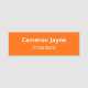 Personnalisez cette balise de nom orange avec le nom de l'employé, le titre professionnel de l'emploi ou tout autre texte personnalisé. Il est léger et disponible avec une fixation magnétique du dos (ne pas utiliser avec des pacemakers) ou avec une broche de sécurité dos. Il s'agit d'une étiquette orange à deux lignes avec du lettrage blanc et un design simple. Il est 3 pouces x 1 pouce et disponible en d'autres formes. Les étiquettes de nom du rectangle sont disponibles dans d'autres tailles. Pas de quantité minimale de commande et pas de frais de configuration.