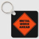 Funny classic orange diamond caution road sign warns of metal work ahead in a thick black sans serif font, which is a warning sign for the road work sign that will be coming up next. Perfect gift for an ironmonger, metal worker, heavy metal musician. Personalize this item by adding a name on the back.