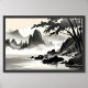 classic painting landscape rocky river black white poster