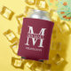 featuring personalized groomsman's monogram, name and title in white classic serif font style on burgundy red background.