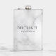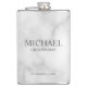 featuring personalized groomsman's name, title and wedding date in grey classic serif font style on white marble background.