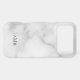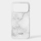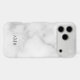 Classic design features personalized 3 letter initial monogram in grey classic serif font style on white marble background.