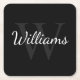 Classic Personalized Monogram and Name Black Square Paper Coaster
