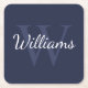 Classic Personalized Monogram and Name Navy Blue Square Paper Coaster