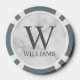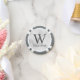 features personalized monogram and name in grey classic serif font style on white marble background.