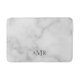 Classic design features personalized 3 letter initial monogram in grey classic serif font style on white marble background.