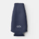 Classic design features personalized 3 letter initial monogram in white classic serif font style on navy blue background.