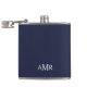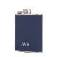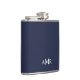 Classic design features personalized 3 letter initial monogram in white classic serif font style on navy blue background.