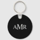 Classic design features personalized 3 letter initial monogram in white classic serif font style on black background.