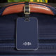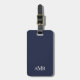 Classic design features personalized 3 letter initial monogram in white classic serif font style on navy blue background.
