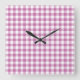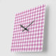 Classic Pink And White Gingham Pattern Square Wall Clock