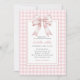 Classic Pink Bow Gingham Girl Baby Shower Invitation