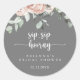 This classic pink floral sip sip hooray bridal shower favour sticker is perfect for a rustic wedding shower. The design features elegant watercolor dusty pink roses and green foliage, neatly assembled into beautiful bouquets with a grey background.