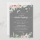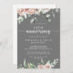This classic pink rose 50th grey wedding anniversary invitation is perfect for a rustic event. The design features elegant watercolor dusty pink roses and green foliage, neatly assembled into beautiful bouquets with a grey background.