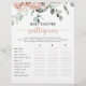 This classic pink rose baby shower scattegories game is a perfect a fun activity for a rustic baby shower. The design features elegant watercolor dusty pink roses and green foliage, neatly assembled into beautiful bouquets.