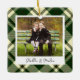 A sweet double sided photo ornament displaying a favourite photo on each side, on a festive green plaid background. Personalize with a custom caption on the front in handwritten lettering, and add the year to the back.