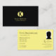Classic Plain Black Yellow with Monogram and Photo Business Card
