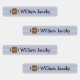 Personalize this adorable waterproof name label with your child's name (click customize further to change font colour or type). Features a hand-drawn football with navy pin striped background. Check out our school supply section for other designs.