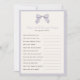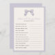 Editable game title and text questions for baby shower or bridal shower. How well do you know mom to be, who knows mommy best game. Features a hand painted bow with subtle plaid in Light Purple and ivory background; editable border and background colour on front and back.
