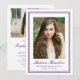 Commemorate your graduate’s achievement with this elegant photo graduation party invitation, featuring a traditional purple double border that adds a refined and distinguished touch. The front showcases the graduate’s portrait alongside their name and school in a timeless layout. On the back, a horizontal photo adds a personal element, with party details presented below for a cohesive and complete design. Suitable for both high school and college graduates, this purple graduation party invitation offers a beautiful and memorable way to invite guests to celebrate their success.