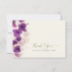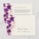 A few branches of purple orchids, hand-drawn in digital watercolor and a loose, expressive style, with wispy decorations that remind of a wedding bouquet, make for a modern, sophisticated, elegant and chic wedding thank you card. The elegant calligraphy script, in the hue of gold, makes this stylish design even more elegant.