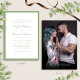 Combine timeless elegance with a personal touch using this classic real sage green script and photo wedding invitation. The front features refined script typography in a true sage green hue, offering a fresh, natural look that feels classic and inviting. The back showcases your favorite engagement photo, creating a meaningful and memorable presentation for your guests. This balanced design blends formal typography with modern photo styling, making it ideal for garden, classic, and modern romantic weddings.
