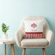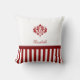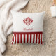 a classic red and white striped pattern pillow with an elegant red damask emblem. Personalize this preppy and stylish design by adding your name.