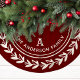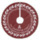 This classic tree skirt design features a rich red background adorned with a white laurel wreath, encircling a customizable family name and initial. The elegant, timeless style is perfect for adding a personalized touch to your holiday decor. The vibrant red and white contrast creates a warm and festive look, making this tree skirt a beautiful and unique centerpiece for your Christmas tree.