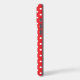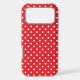 White polka dots on a red background.