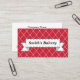 A classic banner design decorates this classic red business card. Customize this business card to suit your needs. Change the information, background colour, etc...The design is from original art. Use this professional business card for a boutique, bakery, alterations, coffee shop, chocolatier, gourmet foods, chef, caterer, catering, florist, cosmetologist, appointments, hair stylist, salon, spa, nail salon, home decor, interior design, accessories, knitting, sewing, antiques, etc...