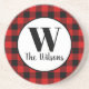 Classic Red Black Buffalo Plaid Monogram Coaster