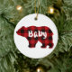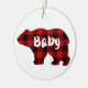 Classic red black plaid bear design baby ceramic ornament