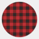 Classic red black plaid pattern round sticker