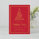 Invite guests to celebrate the season with this holiday party invitation featuring a rich red background and a hand-drawn Christmas tree framed by a shimmering gold foil double border. “Holiday Party” appears in coordinating gold foil lettering, creating a festive and luxurious look. The red and gold design adds timeless holiday elegance, perfect for Christmas dinners, festive gatherings, and corporate or business holiday parties alike.