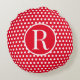 Classic Red Custom initial letter Polka Dot Round Pillow