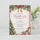 This classic Christmas invitation features festive red ribbons, gold ornaments, lush greenery, and a beautifully decorated Christmas tree. The warm, traditional color palette brings nostalgic holiday charm to any gathering. Ideal for timeless Christmas parties with a cheerful, vibrant seasonal style.