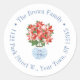 This flexible sticker design features a festive red poinsettia plant in a blue and white ginger jar planter with circular text border. Shown here for a return address label but all of the text fields are flexible to your needs eg could be a thank you favour sticker.
