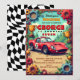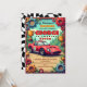 Buckle up for a high-speed adventure with this Vintage Grand Prix birthday invitation! This artistic design features a classic red racing car surrounded by golden trophies, industrial gears, and a scenic pine forest backdrop. The vibrant, hand-drawn illustration style offers a nostalgic and premium feel, perfect for a car-themed birthday party or any racing fan. This template provides ample space for your custom text while maintaining a cool, retro-automotive aesthetic.