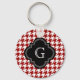 A clean, classic houndstooth pattern in red and white with a black label for your monogram, name or other text.