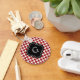 Classic Red & White Houndstooth Pattern with Black Monogram Label