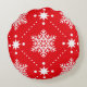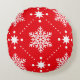 Festive red and white snowflakes christmas pattern on round pillow.