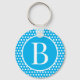 Classic Retro initial letter Sky Blue Polka Dots Keychain